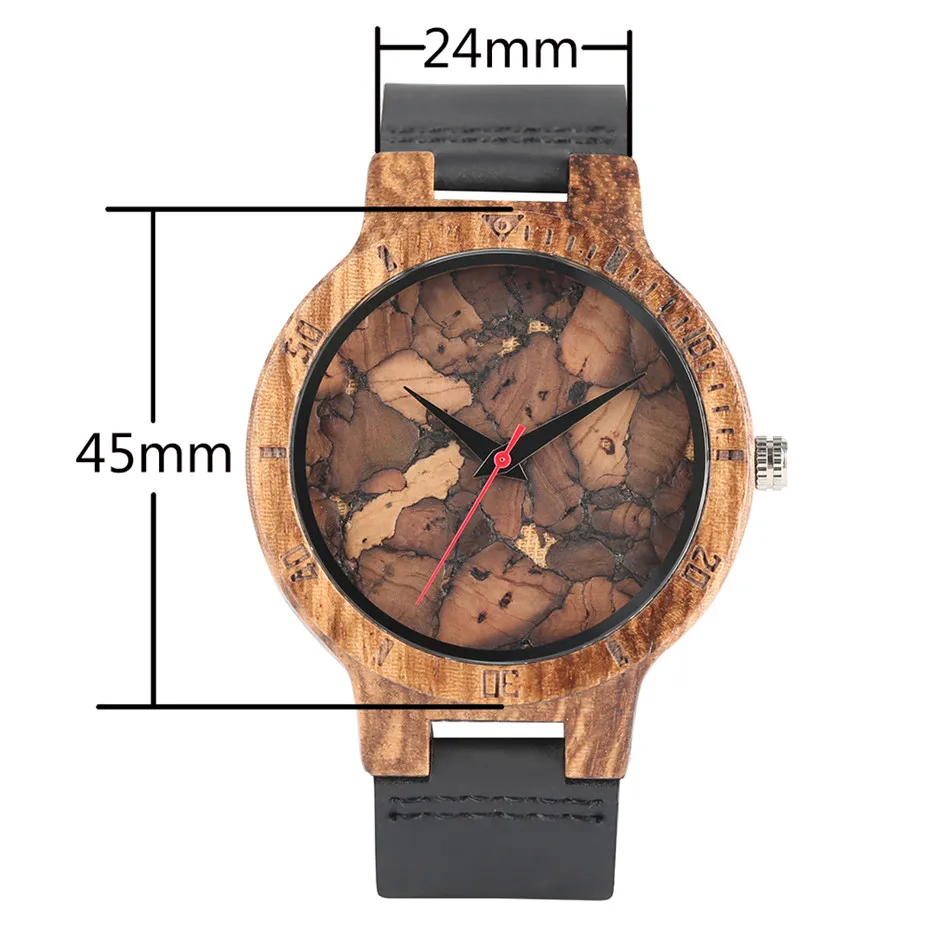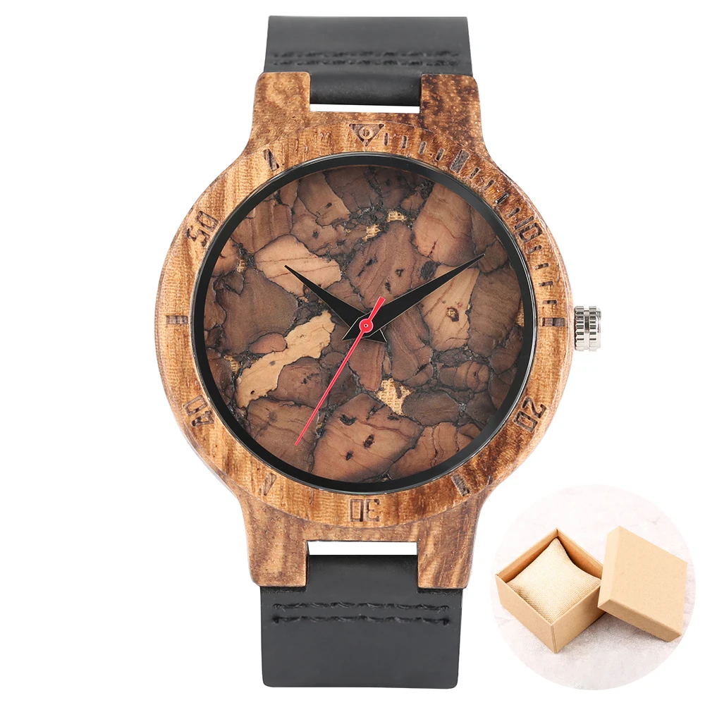 Unique Irregular Pattern Display Wood Watches Quartz Timepiece